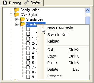 Style definitions can be maintained from the CAM Styles section of the System tab.