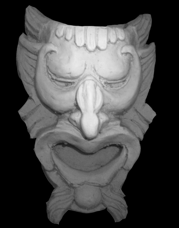 Inspired by the inimitable greybeard’s experiments in the cnczone 3D for Crazies thread, I photographed an object submerged in a tray containing water and blue food colouring. I then used a drawing program to filter the bitmap to just show the red channel as a greyscale image. In theory, the further the item is from the surface of the liquid, the more blue it will appear. This worked much better than I expected although care must be taken to avoid surface reflections and air bubbles. This is perhaps not such a good idea for making heightmaps of people.