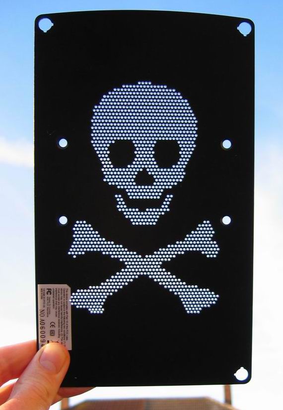 This is the aluminium cover off an ICY BOX external USB hdd enclosure. Should look neat with some LEDS behind it.